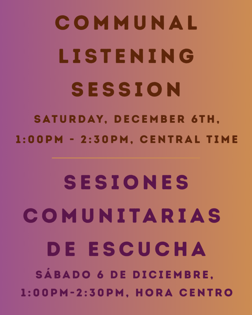 Please Click Here to RSVP for the Communal Listening Session on Saturday, December 6th